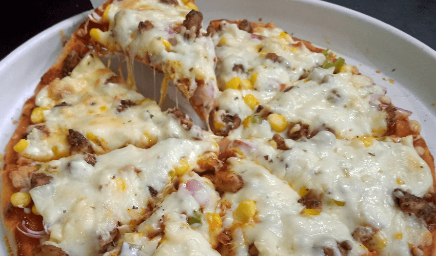 Who doesn't love to munch on some healthy pizza? Try out our version of wheat pizza with yummy toppings of your choice loaded with a whole lot of cheddar and mozzarella cheese.
